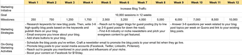 Sumo has some incredible marketing plan templates. I used one of their templates to grow an Instagram account from 0-30k subscribers in 18 months. And here they strike again with a super-specific template & strategy on how to take your blog traffic to 10,000 visits in just 12 weeks.