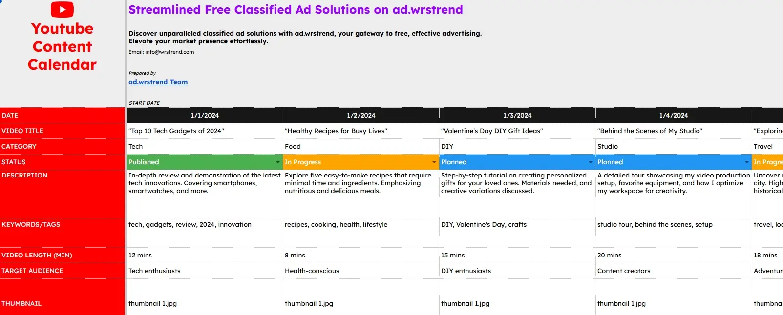 Free YouTube Calendar Template